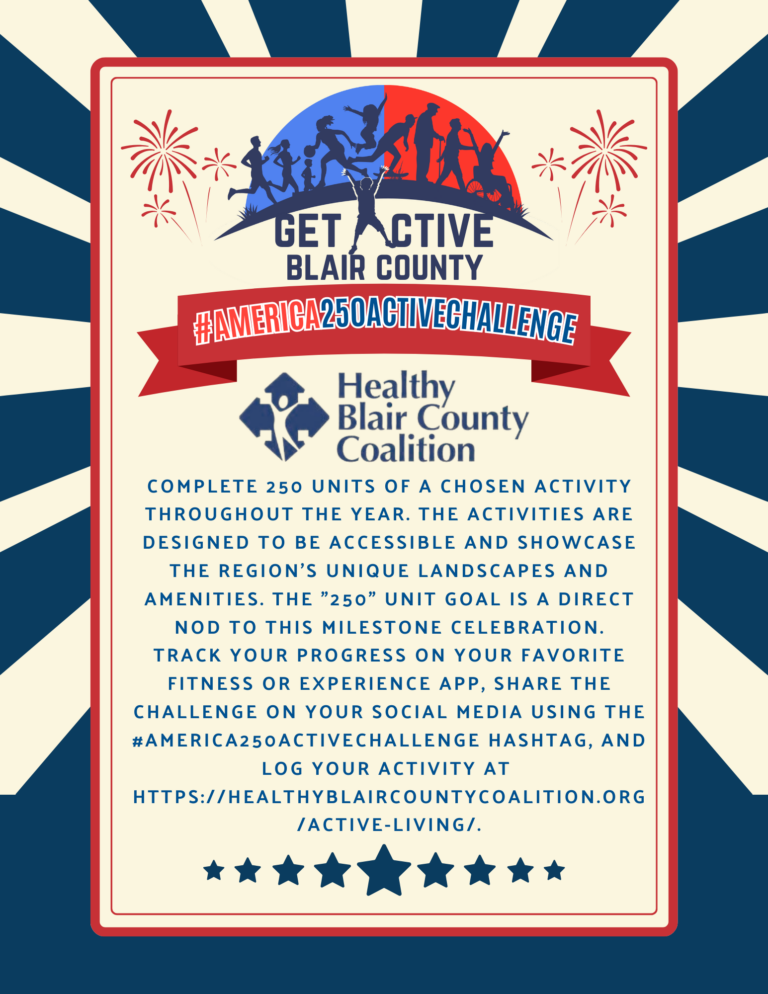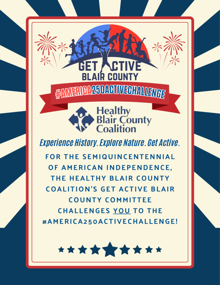 About Get Active Blair: The Active Living Blair County Committee is implementing programs/activities to address obesity, encourage physical activity, and impact the incidence of diabetes. One of their goals is to encourage the integration of health and wellness into every aspect of community life by coordinating and collaborating with all other agencies currently working on this effort. Meetings are scheduled the third Wednesday of the month at 8:30 am.